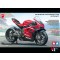 Decals authentically depict subtle red gradation patterns and carbon fiber material of cowlings, sections of Akrapovič racing exhaust and carbon swingarm cover.