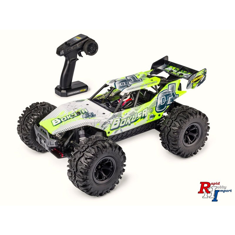 De 1:10 Bokusa BL 2S 4WD RTR Yellow biedt een groot aantal technische hoogtepunten, waardoor hij een onverslaanbare allround RC-racer is voor echte fans en gevorderde liefhebbers. Bijzonder opvallend zijn in de eerste plaats de 4WD-vierwielaandrijving via een centrale cardanas van staal, de koppelrijke 3900 kV borstelloze motor, de krachtige 60A-snelheidsregelaar met ventilator, ook geschikt voor 2S, en de 30 kg stuurservo met metalen tandwielen. Extra kenmerken zijn de ingebouwde oliedrukdempers voor optimaal rijgedrag op elk terrein, versterkte aandrijfassen van staal, de complete kogellagers, de onafhankelijke wielophanging met versterkte dwarsarmen, 110 mm monsterbanden met bandenvoeringen en de achterbumper met geïntegreerde wheeliebar.