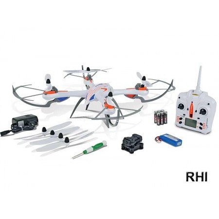Volledig gemonteerd afstandbestuurbare quadrocopter 2.4, reserve rotorset, LiPo-accu, oplader, zender batterijen, rotors beschermers, gedetailleerde handleiding. en Camera