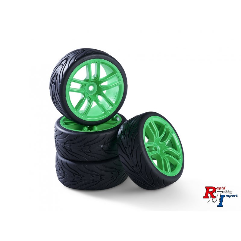Deze wielset is geschikt voor alle schaal 1:10 modellen met een velgdrijver van 12 mm. De speciale rubbersamenstelling van de banden geeft je voertuig een goede grip en daardoor een uitstekende wegligging.