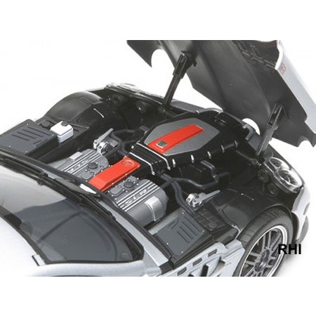 Het staande model is een replica van de Mercedes Benz SLR 722 McLaren. De originele SLR-serie werd uitgebracht in de jaren 50 en was gebaseerd op de F1-auto W196. De SLR722 werd uitgebracht in 2006 en werd aangedreven door een 5,4 liter SOHC V8-motor met supercharger, die het voertuig een vermogen van 640 pk opleverde. De SLR 722 accelereert in 3,6 seconden van 0 naar 100. Vanwege de extreme prestaties die dit voertuig behaalt, wordt het ook vergeleken met de Ferrari Enzo of de Porsche Carrera GT. De TAMIYA-modelkitversie maakt indruk met zijn nauwkeurigheid van pasvorm en aandacht voor detail.
