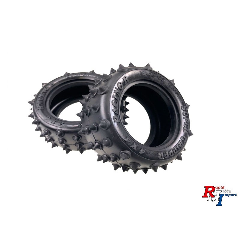 Pin-spike achterbanden voor Tamiya VQS en Egress. Bandbreedte 38mm. Bijpassende velgenset 4WD Off-Road (319335061).