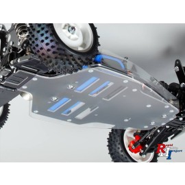 Der 4WD-Buggy Top Force wurde 1991 anlässlich der Veröffentlichung von Tamiyas 100. RC-Wagen auf den Markt gebracht. Die Designer haben das Feedback und die Erfahrung, die sie im Laufe der Jahre gesammelt haben, einfließen lassen, um einen reinrassigen Rennfahrer wie keinen anderen zu produzieren! Der Top Force wurde für einen extrem niedrigen Schwerpunkt entwickelt und bietet einen Körper, der sowohl aerodynamisch als auch cool anzusehen ist! Der Top Force verfügt über vorne und hinten abgedichtete Getriebe, die für eine zuverlässige Haltbarkeit zwischen 2-mm-GFK-Platten eingelegt sind. Dieser Stil wurde später zum Standard für R / C-Tourenwagen und demonstrierte, wie revolutionär Top Force war. Das Getriebesystem verfügt über eine harte Gelenkwelle und ein vorderes / hinteres Kugeldifferential. Die Doppelquerlenker-Federung wird mit 4 CVA-Stoßdämpfern geliefert und ist auf ultimative Einstellbarkeit ausgelegt.