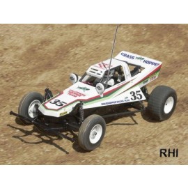 Based on 1-seater buggies seen tearing-up dirt tracks across the U.S. in the 80's, the Grasshopper first made its appearance in R/C stores in 1984. Boasting easy assembly and easy control, the lightweight Grasshopper proved an instant hit as the perfect entry level R/C kit. Also compatible with a whole range of option parts such as 540 motor and ball bearings, the Grasshopper was an entry level car that could keep up with the owners driving experience. Packed with all the fantastic features of the original kit, this fun 2WD buggy is a blast on both off-road and on-road tracks. Whether it was your first or will be your first, the Grasshopper guarantees to please.
