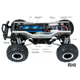 Special feature 3 The CR-01 chassis? supreme climbing ability stems from the rigid 4- link suspension with front/rear stabilizers. It is fitted with push rod- actuated oil dampers, with coil springs to act as tension springs. Front and rear 3-bevel differentials are lockable to provide even better traction off- road.