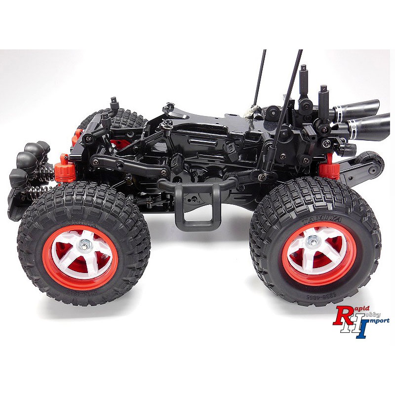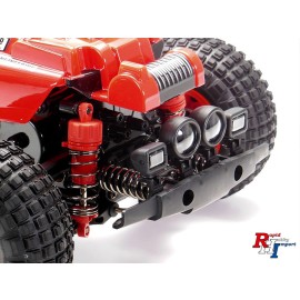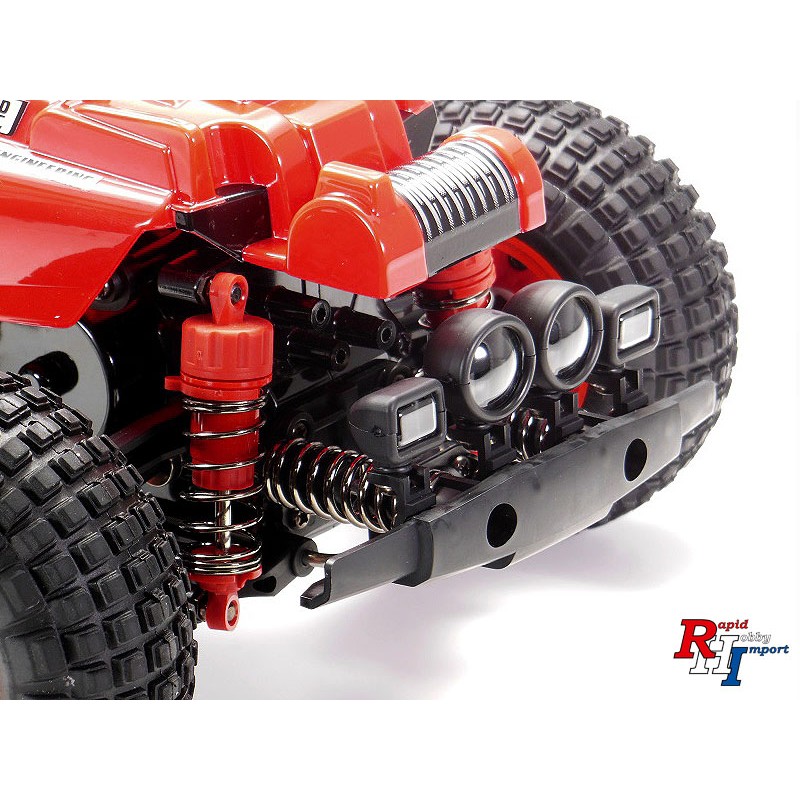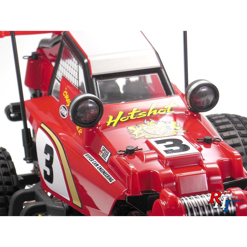 - Rode, voorgelakte (PS-2) behuizing van polycarbonaat, gebaseerd op het legendarische Tamiya Hotshot-ontwerp