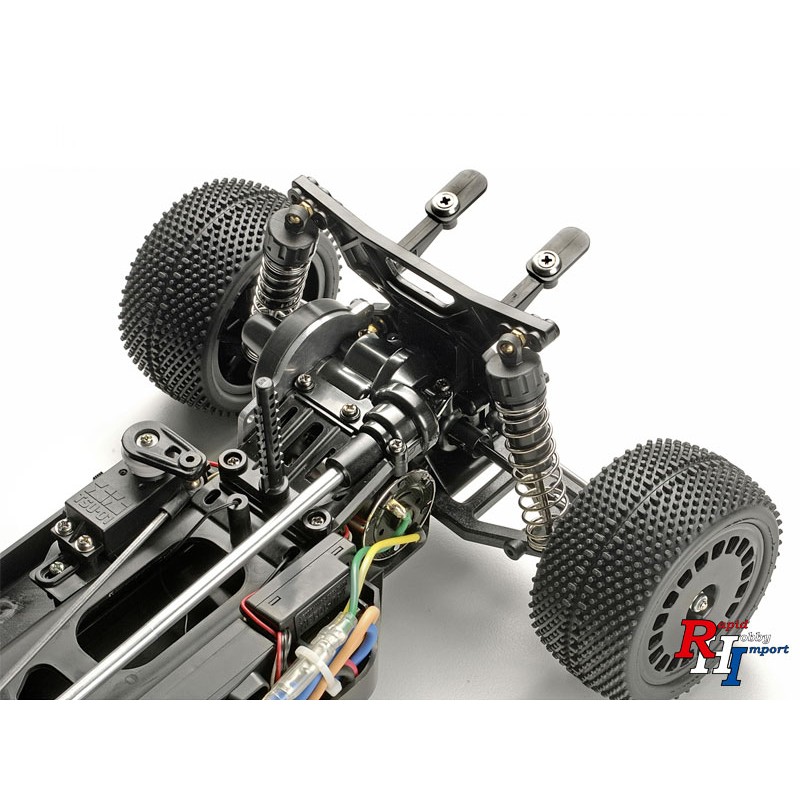 Deze 1/10 schaal 4WD buggy is speciaal ontworpen om uit te blinken in off-road buggy racen. Hij heeft een middenachter gemonteerde motor en een in de lengte geplaatste accu voor een optimale balans tijdens het springen. De batterij wordt via de onderkant van het chassis in de buggy gestoken, waardoor de carrosserie niet hoeft te worden verwijderd en routine-onderhoud eenvoudig en snel is. De krachtige 4WD met cardanaandrijving wordt gecombineerd met een veersysteem met extra lange ophangingsarmen voor een betere stabiliteit en off-road handling.